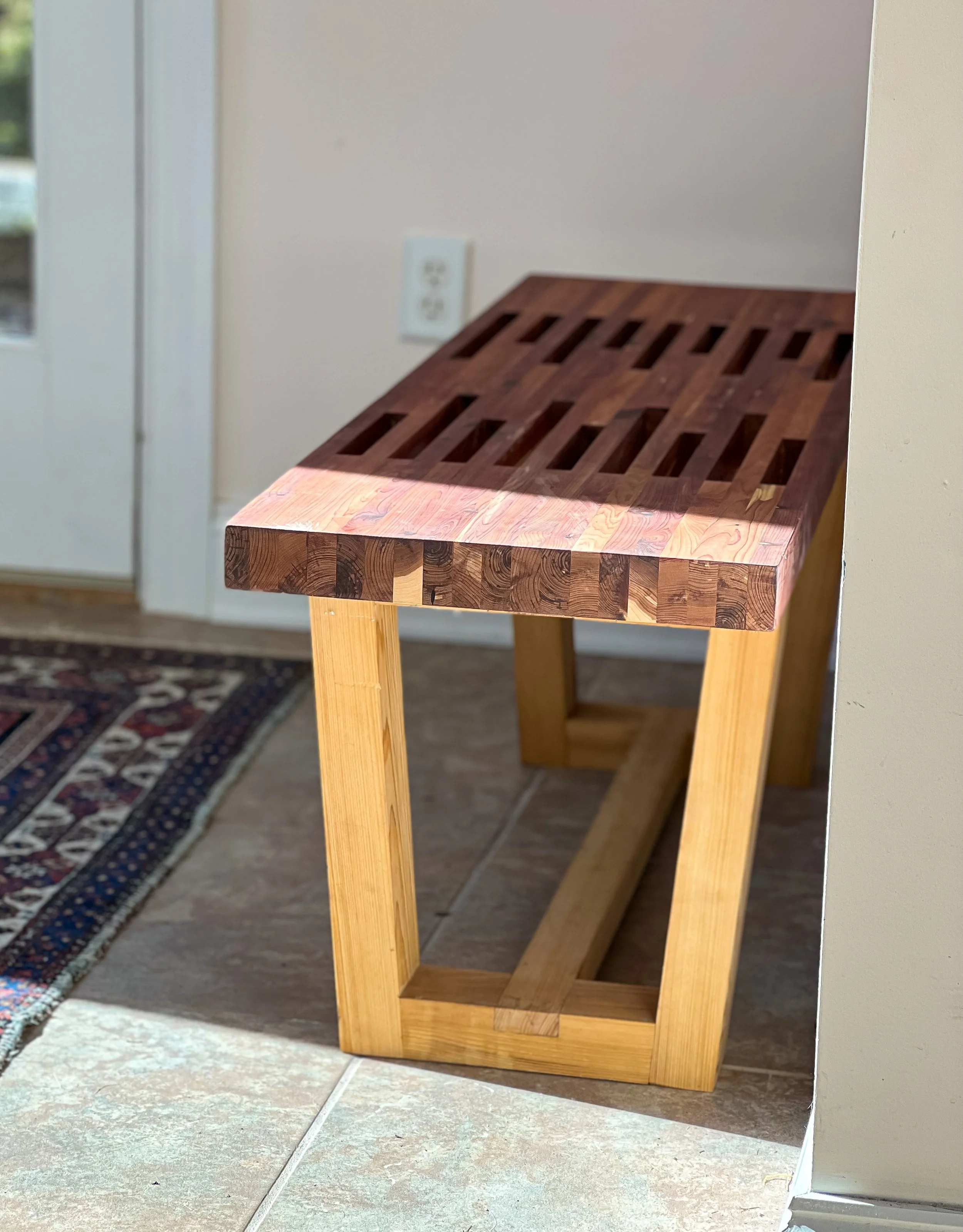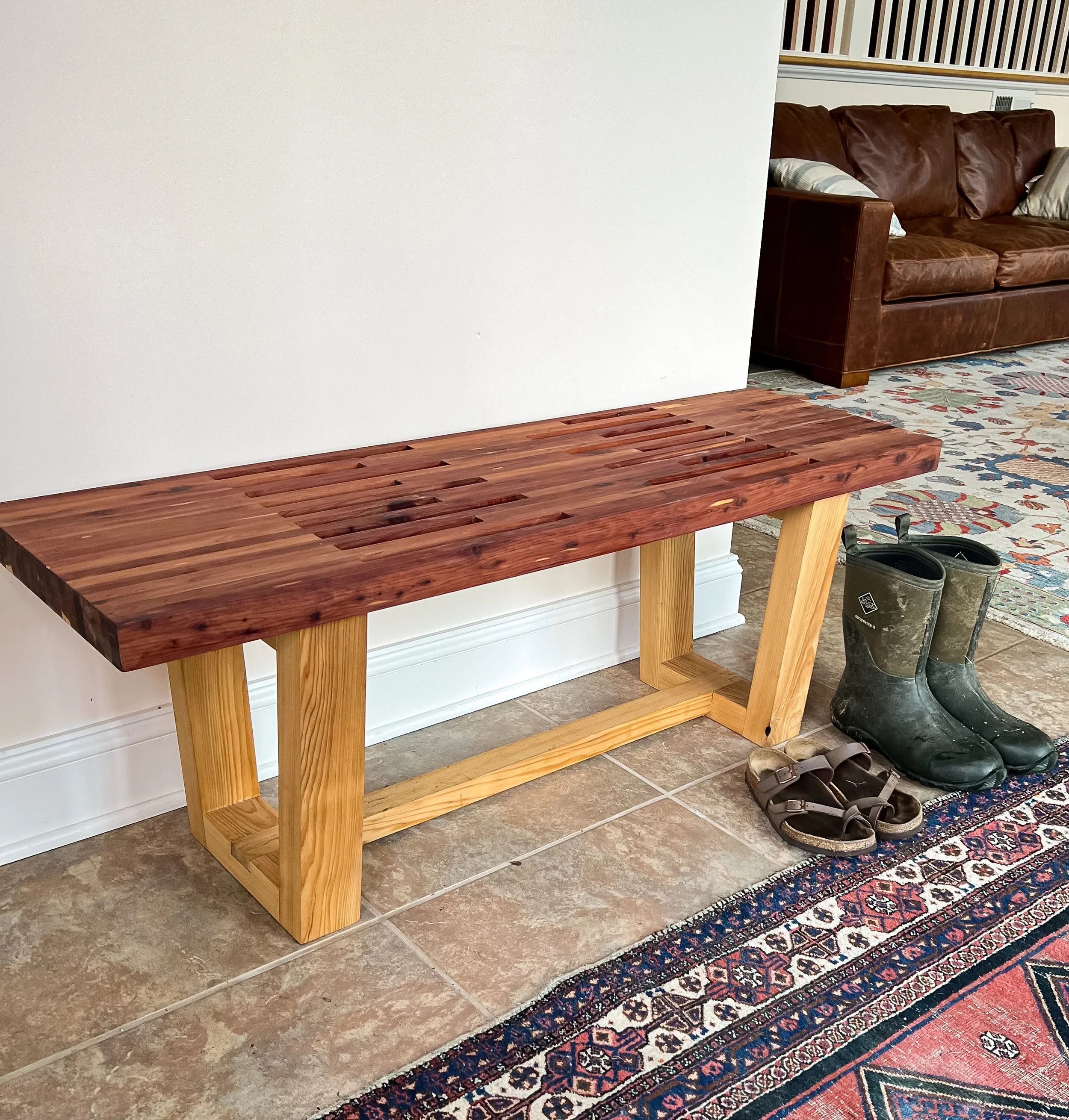 Cedar and cypress entryway bench