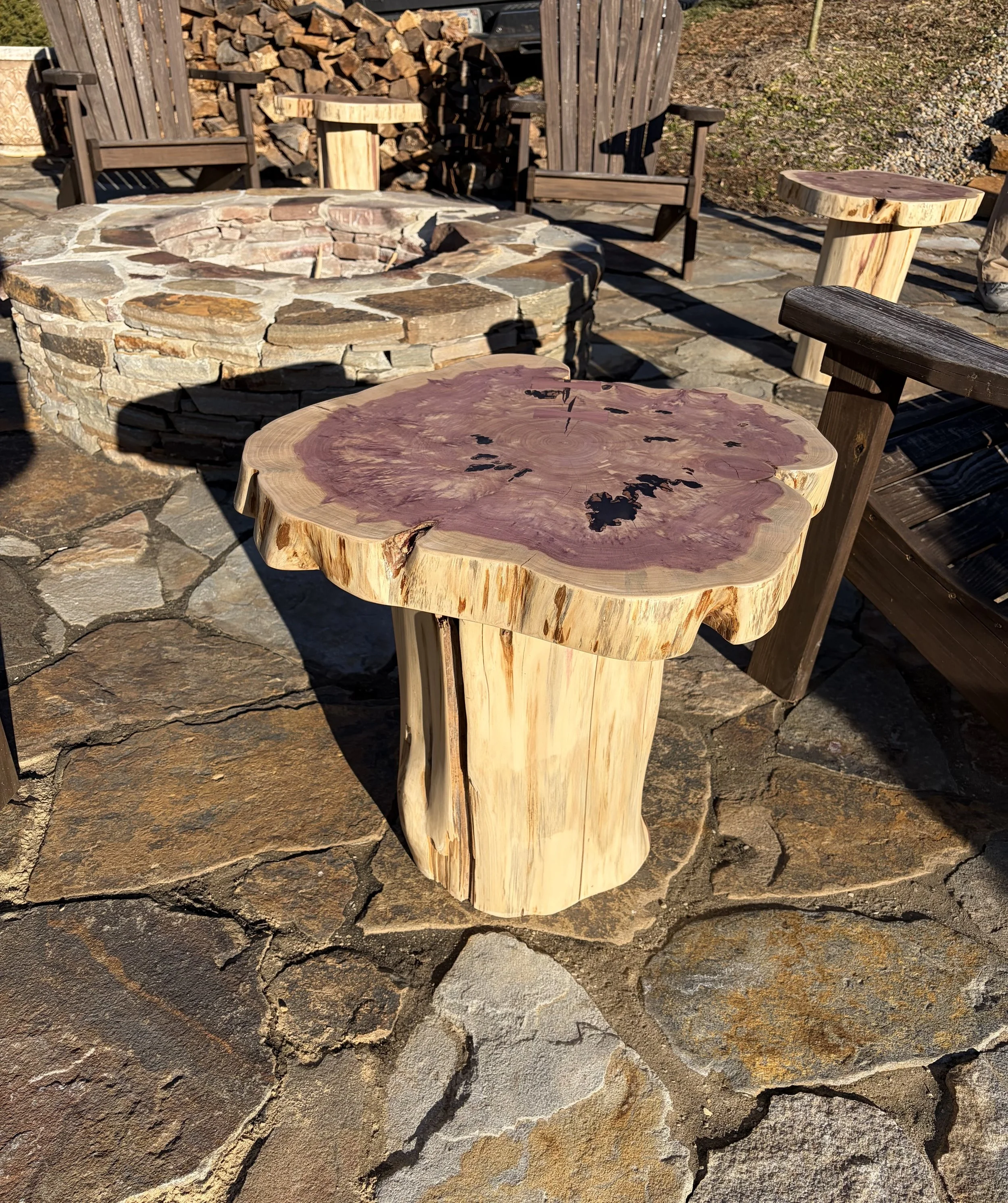 Cedar fire pit side tables